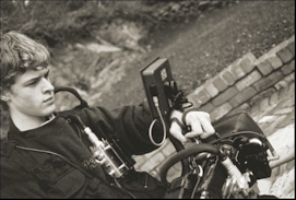 have been. The working prototype saw the light of day on Endor’s ‘The Private Life of Michael Fry’ for CH4, I had to run up a staircase ending up on a close two shot. Couldn’t use steadicam - we hadn’t booked one.... So there I was wearing the matt black helmet with the great gob of viewfinder across one eye and a piece of ND6 gaffer taped to my forehead covering my left eye. I must have looked prehistoric. Director Marc Munden in his inimitable way peered curiously at me and said “do they fire you out of a cannon wearing that thing?” The entire unit collapsed in the very same hysteria my son had - and thus vanished the first few grand of development cash. In my unworldly innocence I had applied to register